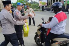 Kapolsek Bontang Barat Pantau Langsung Lokasi Banjir, 380 Nasi Bungkus Dibagikan ke Warga
