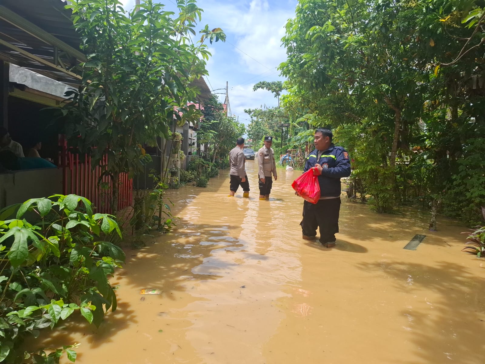 Sejak pukul 07.00 Wita, Kapolsek bersama Kanit Intel, para Bhabinkamtibmas, dan personel pengamanan mendatangi sejumlah titik banjir di dua kelurahan yang terdampak cukup parah, yakni Gunung Telihan dan Kanaan.