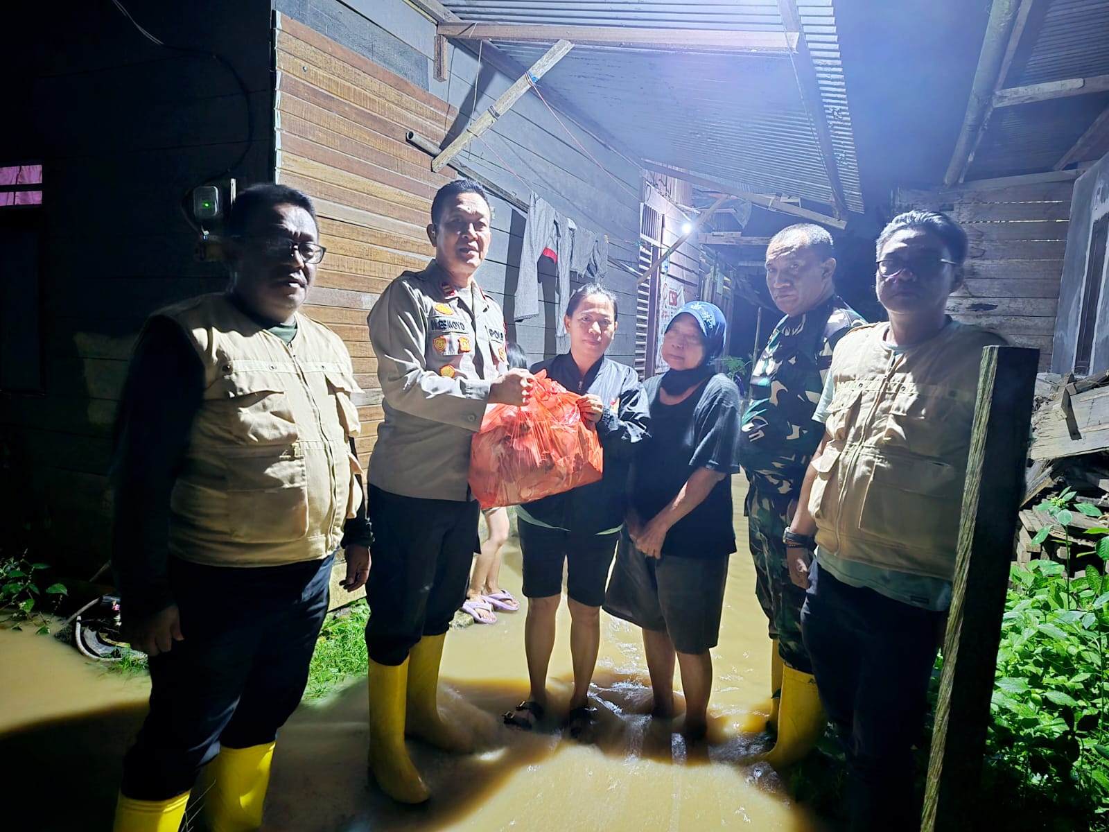Selanjutnya, pada pukul 21.30 WITA, IPTU Hadi kembali turun ke lapangan. Kali ini ia didampingi Lurah Kanaan Salmon S.Kom, Babinsa Peltu Irsan, dan staf Kelurahan Kanaan untuk menyalurkan bantuan dari PT Badak NGL.